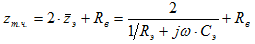 Zэ – состоит из активного Rэ и емкостного Xс = 1/wСэ, обусловленного тем, что в месте приложения электрода к телу образуется как бы конденсатор, обкладками которого является электрод и хорошо проводящие ткани человека, а диэлектриком, разделяющим обкладки – эпидермис.