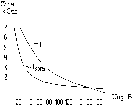 Зависимость сопротивления тела человека от приложенного напряжения.